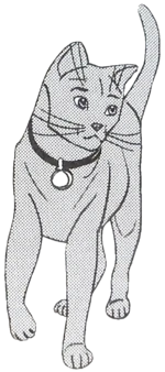 Mitaine ( Angl. Shnuky ) est une chatte au pelage gris et aux yeux verts avec un collier foncé.[2].
